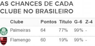 Palmeiras tem 77% de chances de título; São Paulo, apenas 4%...